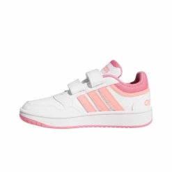 Zapatilla clasica junior de la marca Adidas en color blanco y 3 bandas en contraste en el lateral de color negro, parte superior de piel sintética, cierre de cordones, suela de goma resistente e interior textil.